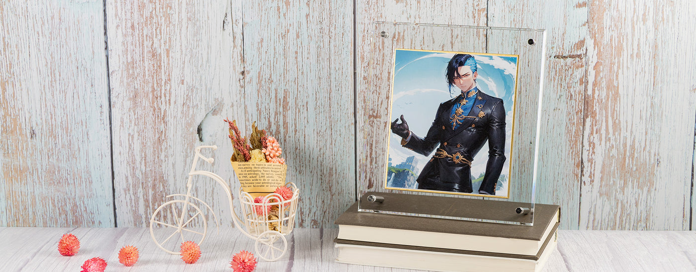 クリスタル Block は重厚感と高級感のあるアクリルフレームです。極厚の存在感とクリスタルのように光を反射する輝きで、より特別な 1 枚を飾るのに最適なフレームです。